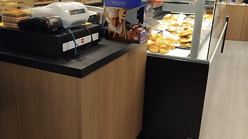 Schlüsselfertiges Projekt. Abbrucharbeiten und Entsorgung der alten Einrichtung und Mauerwerke. Lieferung und Verlegung des Bodenbelags, Elektroplanung sowie Lieferung und Montage der Beleuchtungskörper, Ausmauerungen und Trockenbauarbeiten, Spachtelarbeiten und Anstrich. Lieferung einer Gastronomie-Theke sowie eines gekühlten Wandregals von Oscartielle. Lieferung von Kassenpult, Rückbuffet, Verkleidungen und neutraler Einrichtung von Itab/La Fortezza