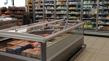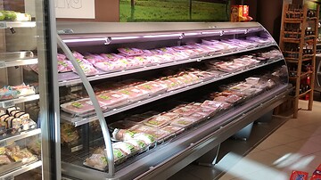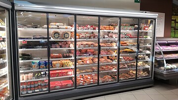Renovierung/Umbau des Verkaufspunktes mit neuen Kühlmöbeln Costan, Anschluss an die Normalkühl- und Tiefkühlzentrale, Lieferung einer neuen Fernüberwachungsanlage!