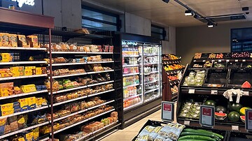 Lieferung von Arneg-Kühl- und Tiefkühltheken, transkritische CO₂-Kälteanlage mit Teko-Zentrale, Wurm-Reglern und Fernüberwachung, Wärmerückgewinnung.