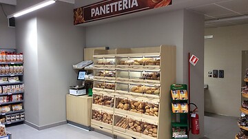 Ristrutturazione totale del punto vendita con nuovi banchi Arneg, casse, mobili pane self, arredamenti e scaffalatura Intrac, telegestione con impianto supervisione.