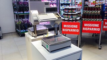 Fornitura mobili refrigerati Arneg con relative motocondensanti, cella Incold, scaffalatura e mobile cassa Intrac, affettatrici ed altre attrezzature, telegestione.